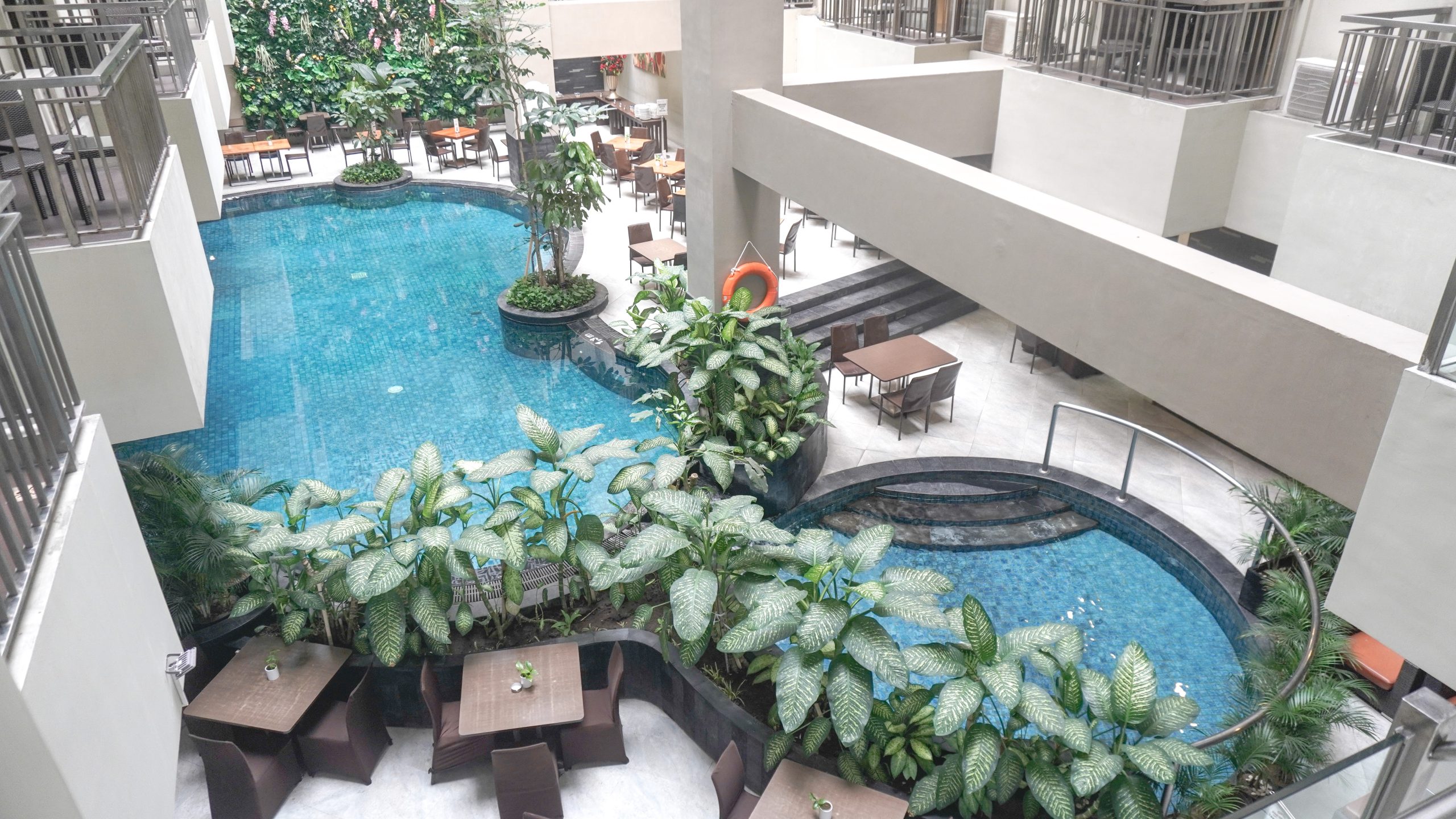 Relax, swim and socialize at the Terrace Pool. Enjoy a refreshing dip in the sparkling indoor pool on the first-floor overlooking the Savana Hotel and Convention Malang. Intimate sitting nooks or heat up your evening with cocktails and conversation around the pool in this chic space.